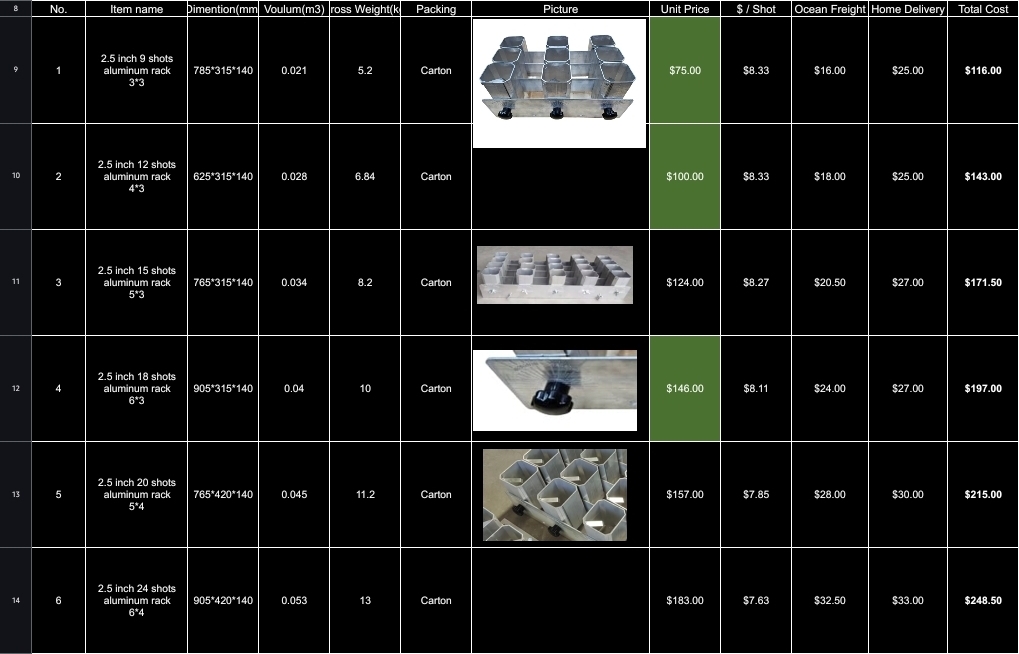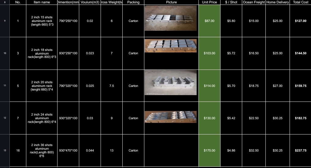 Racks will be available to order through the end of next week of anyone is interested. Domestic shipping will be lower the more racks are ordered. Contact me either by email or text. Jg.pyrotechnics@gmail.com